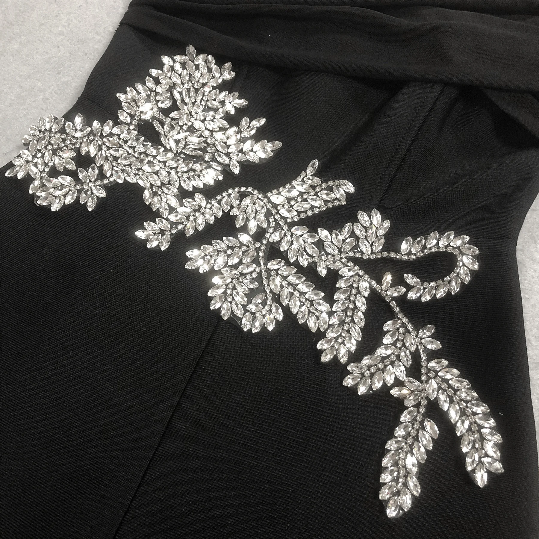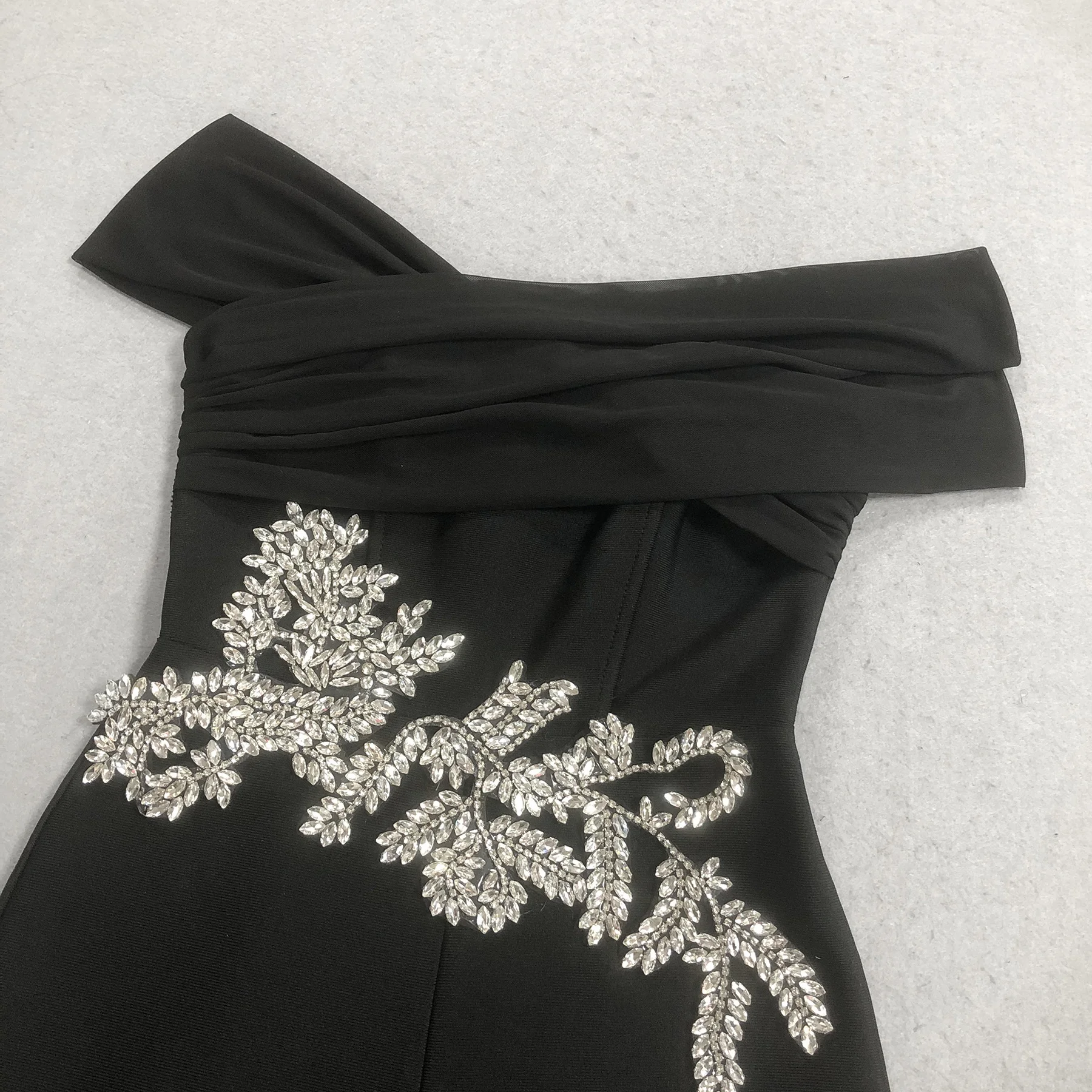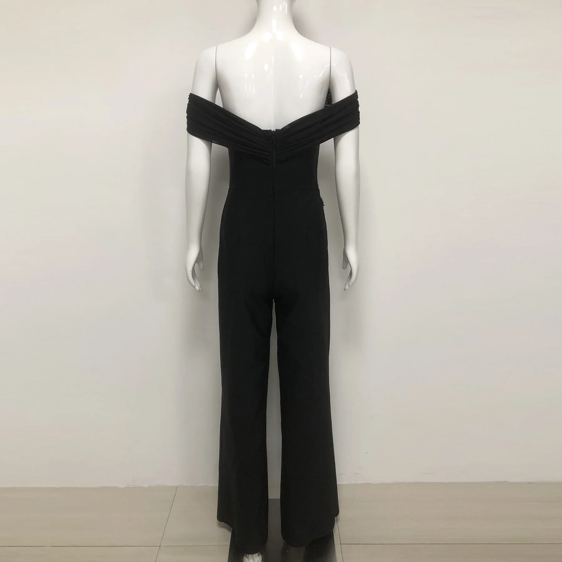 Black Off Shoulder Jumpsuit Rhinestone Bodycon Wide Leg