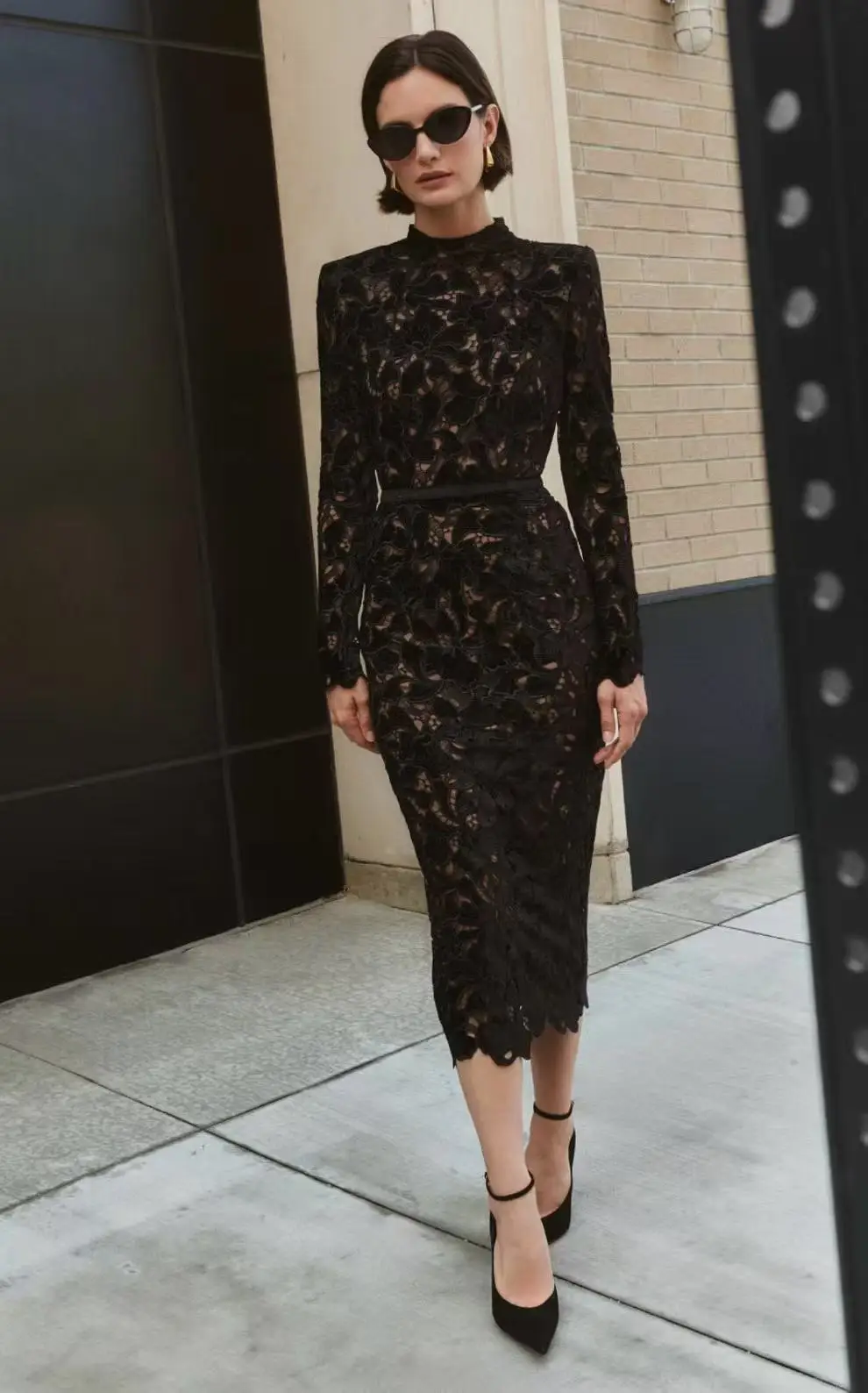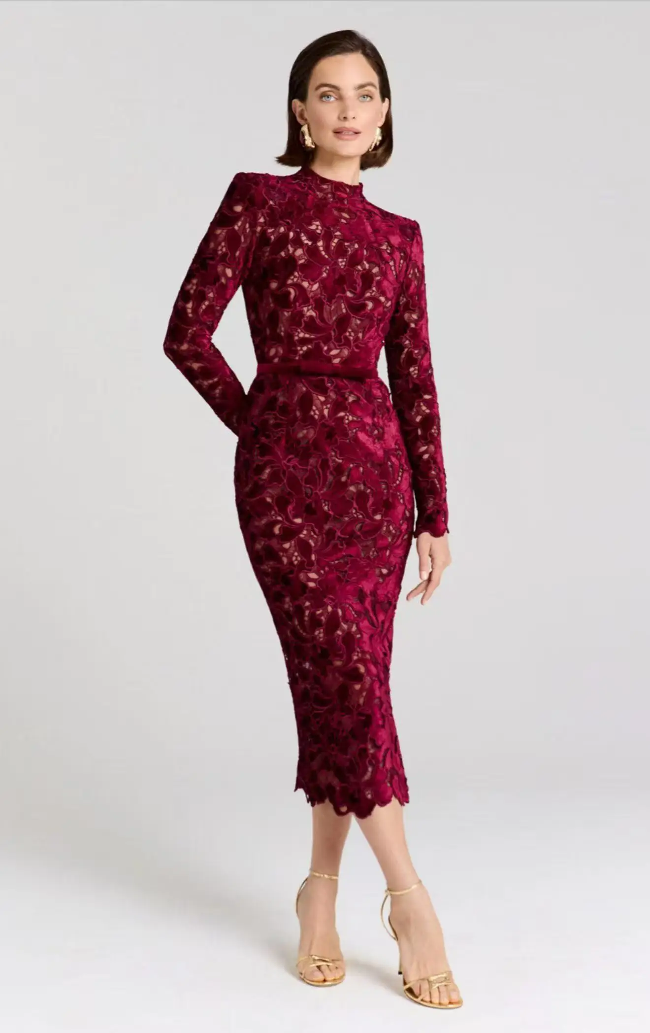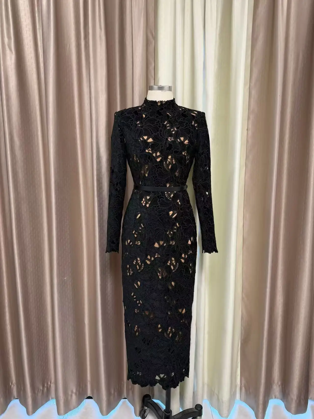Luxury Floral Lace Hollow Long-Sleeve Bodycon Dress