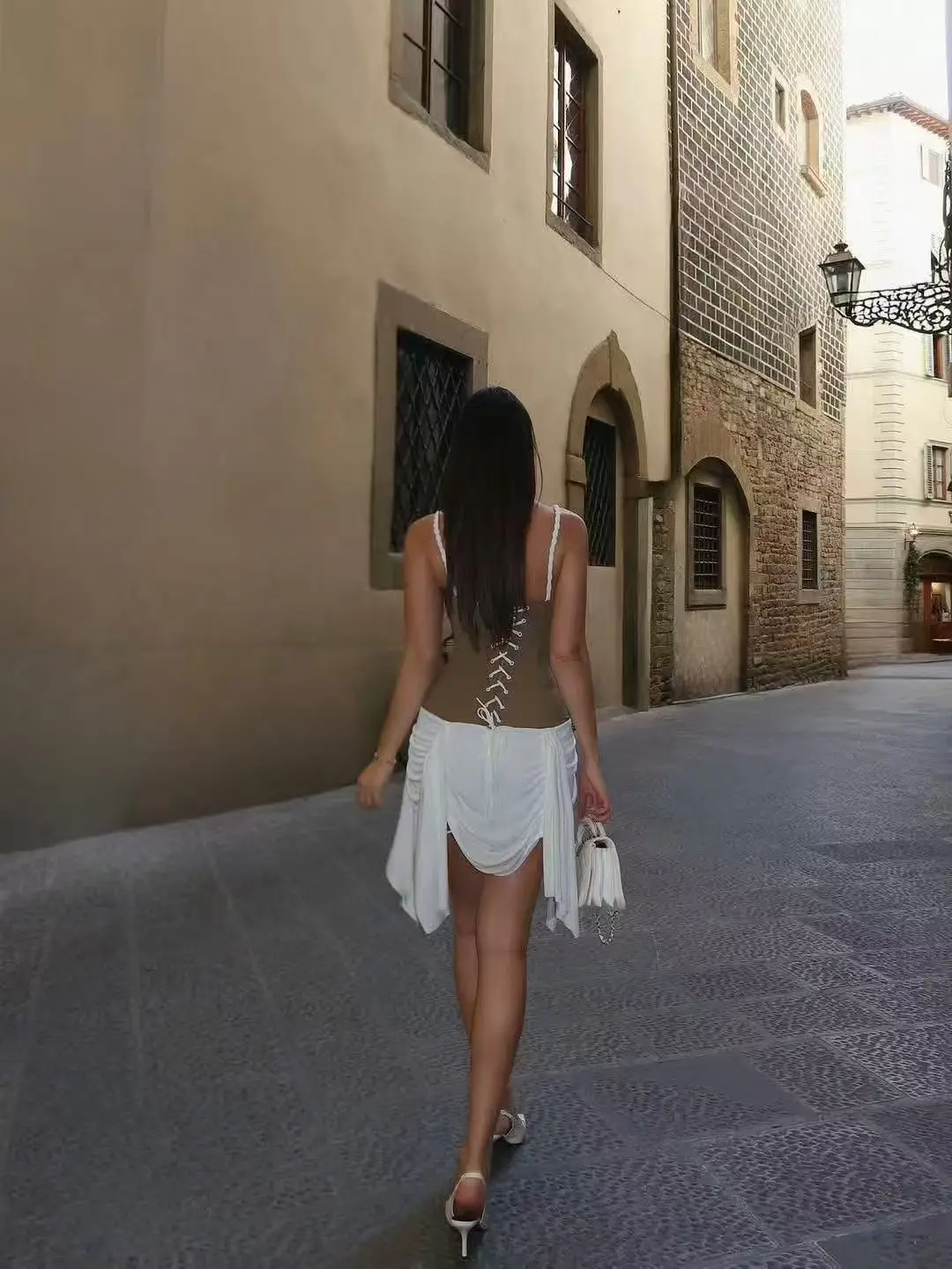 This dress is the perfect outfit to throw on for date nights. It’s made of cotton and the perfect little white dress.
