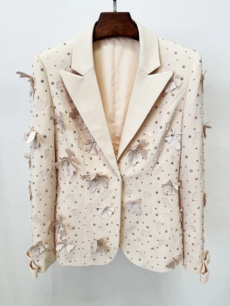 Women's High Quality Long Sleeve Spring Blazer Pants Suits with Button Decoration